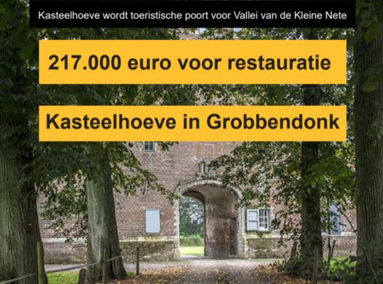 Minister Demir steunt het project onder de noemer 'Veerkracht in de vallei van de Kleine Nete'. “De site in Grobbendonk zal een toeristische poort vormen voor de vallei van de Kleine Nete met een educatieve onthaalfunctie, horeca-aanbod voor recreanten en bezoekers tijdens hun tocht, gemeentelijke musea, een zorgboerderij en enkele zalen voor plechtigheden door het gemeentebestuur, tentoonstellingen, culturele activiteiten en voor plaatselijke verenigingen.” De plannen om dit alles praktisch te realiseren kunnen nu aangezwengeld worden. Suske Verhaegen is maar een van de Grobbendonkenaren die op het puntje van hun stoel zitten. Het is nog steeds de droom van de stichter van het Kempens Wielermuseum om een deel van zijn collectie wielermemorabilia in een gerestaureerde kasteelhoeve te kunnen tonen.